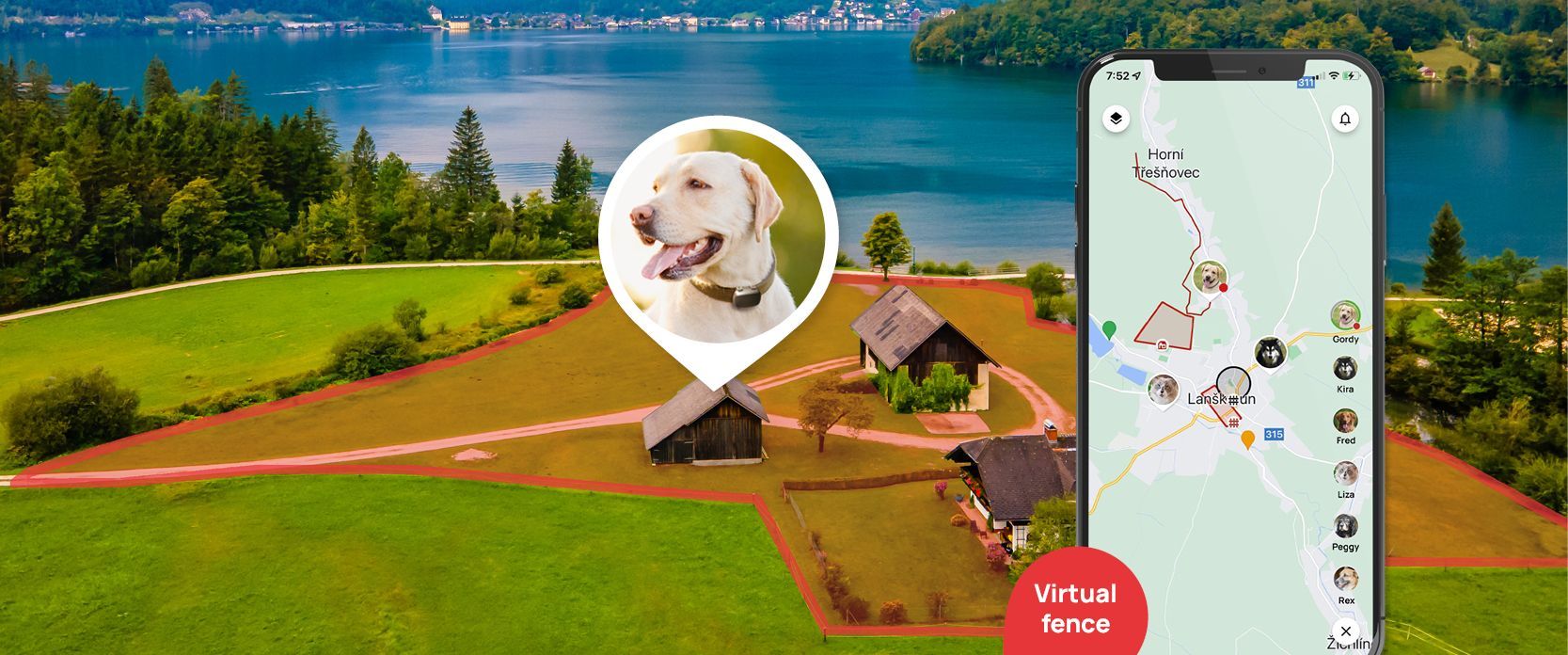 Virtual fences to keep your pets safe. Simply set up zones where you need them, around the house, in the garden or on holiday.